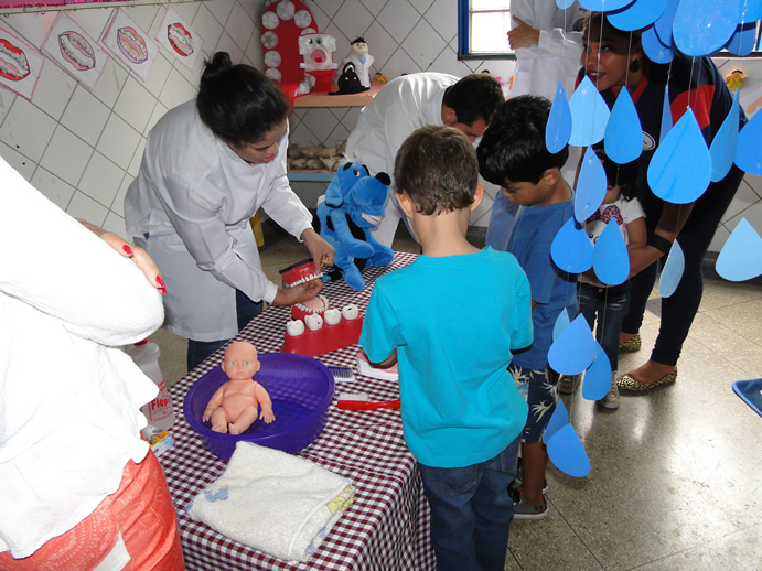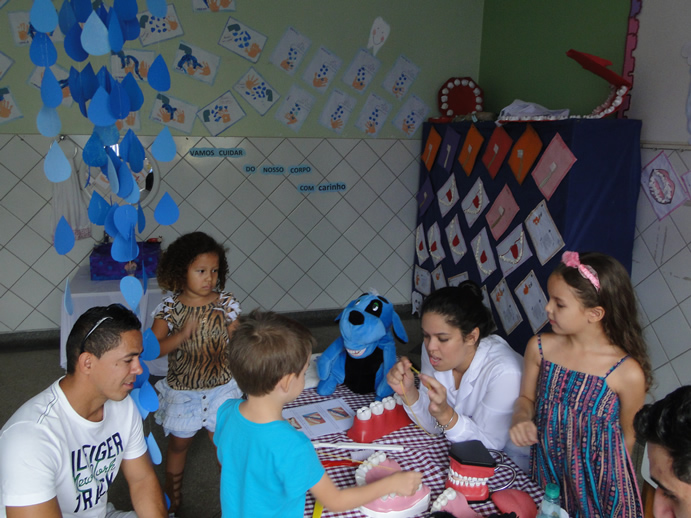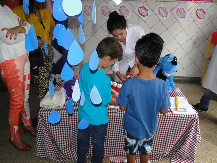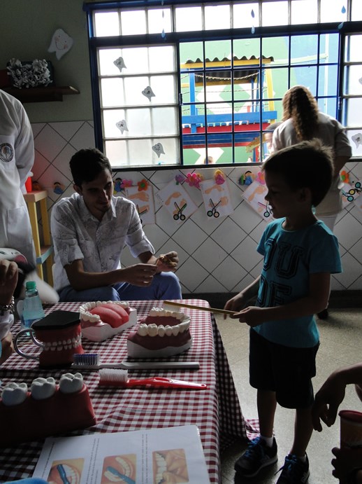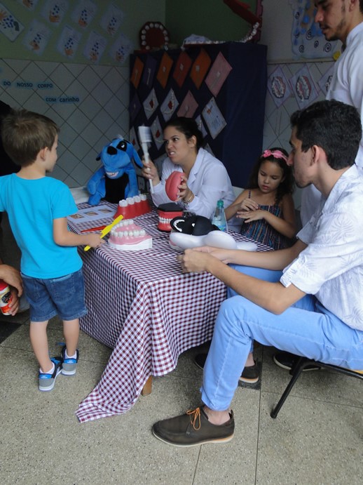 A participação dos estudantes de odontologia da faculdade Católica de Brasília foi incrível, pois ensinaram as crianças a importância da escovação e higiene bucal.